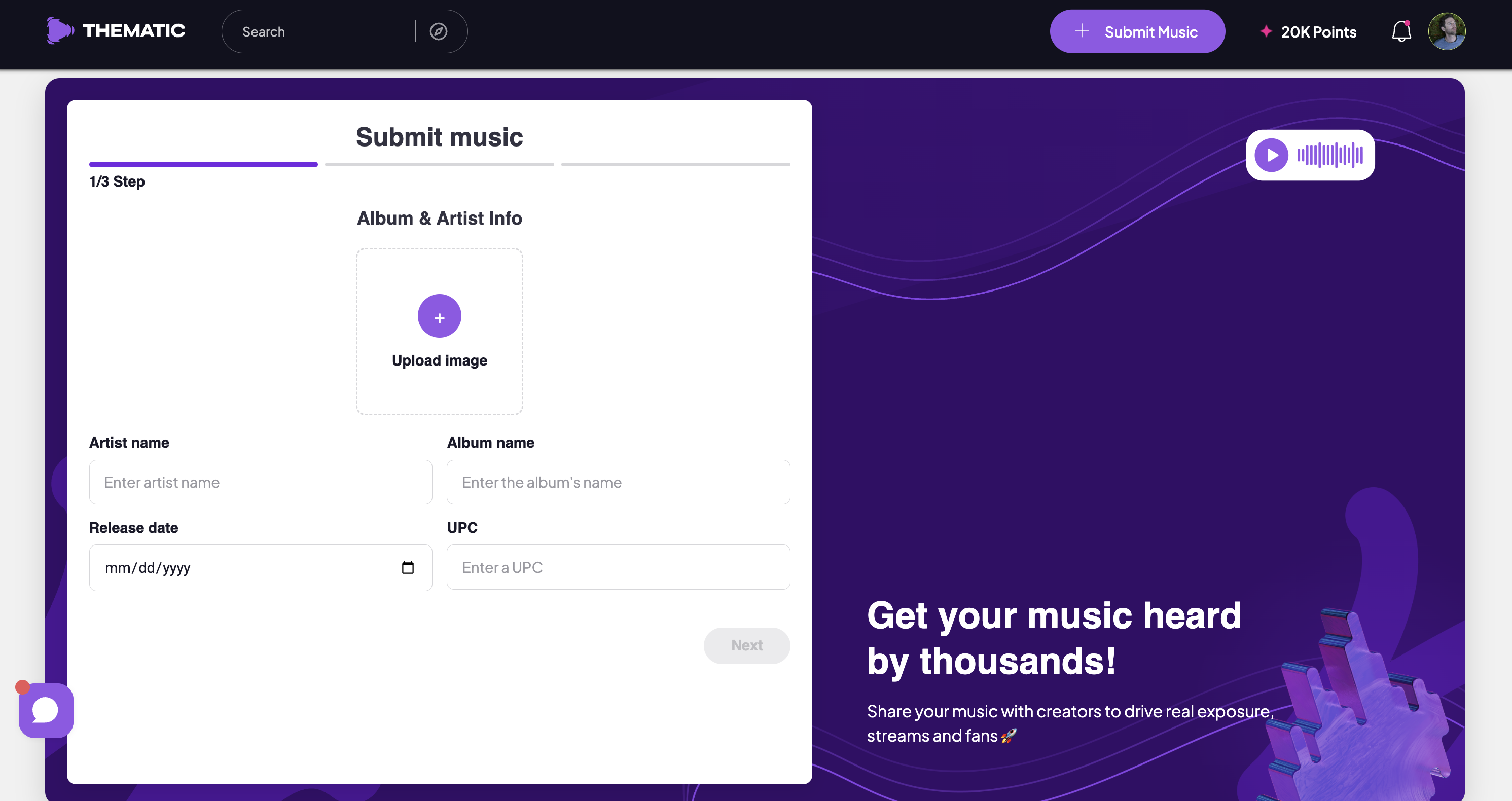 Submitting your music is the first step toward launching a free campaign that helps creators discover and promote your work to new audiences.