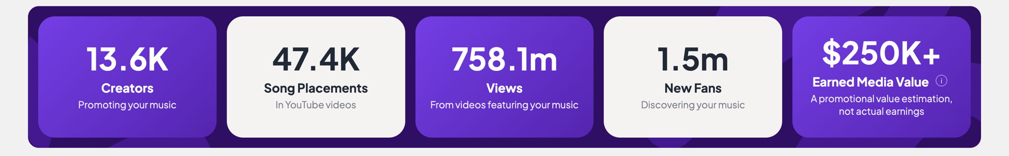 Earned Media Value (EMV) generated by your music’s exposure across YouTube