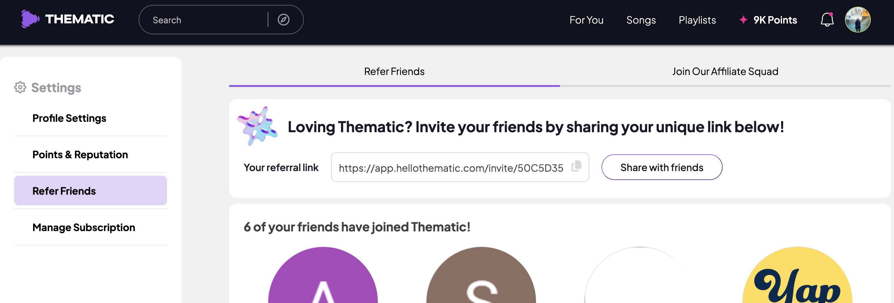 Plus, when friends sign up using your referral link, you’ll earn 300 Thematic points.