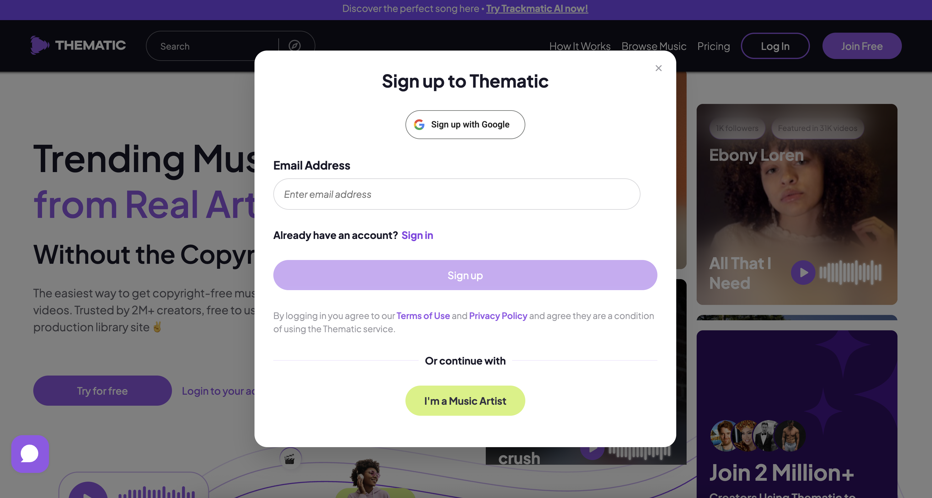 💡 Want to use Thematic as a music artist instead?