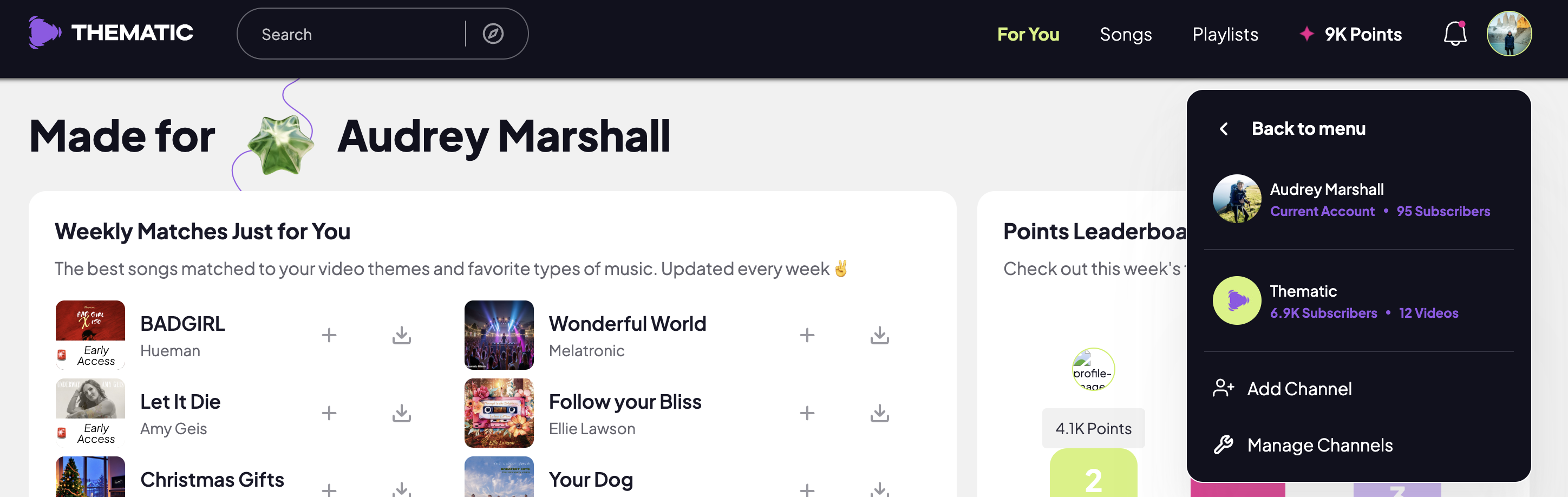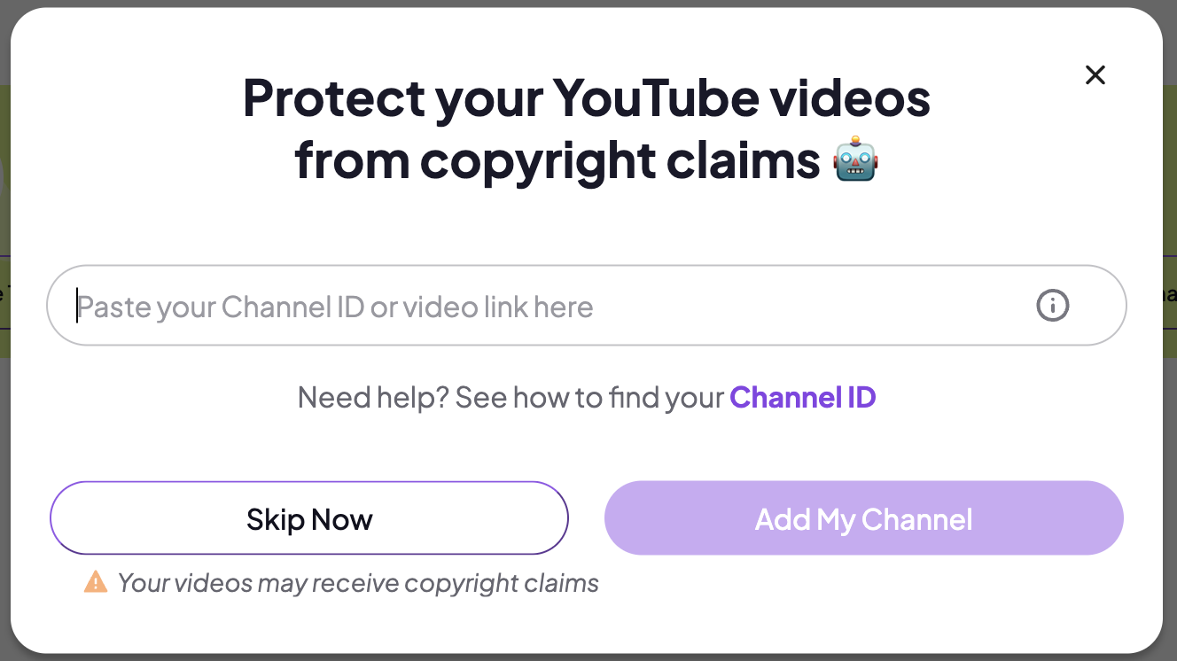 To avoid copyright claims and properly activate your music licenses, you need to add your YouTube channel(s) to Thematic.
