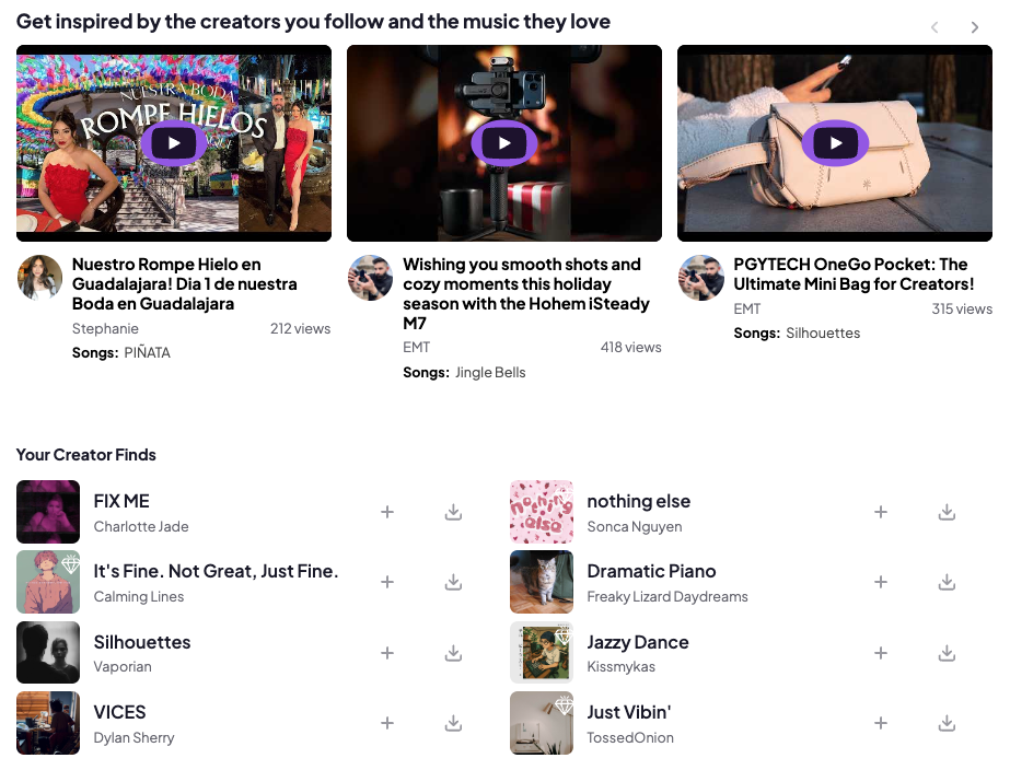 Follow other creators to discover new inspiration and see all the artists and songs they’re featuring in their videos. Your Creator Finds will also show up on your For You homepage.
