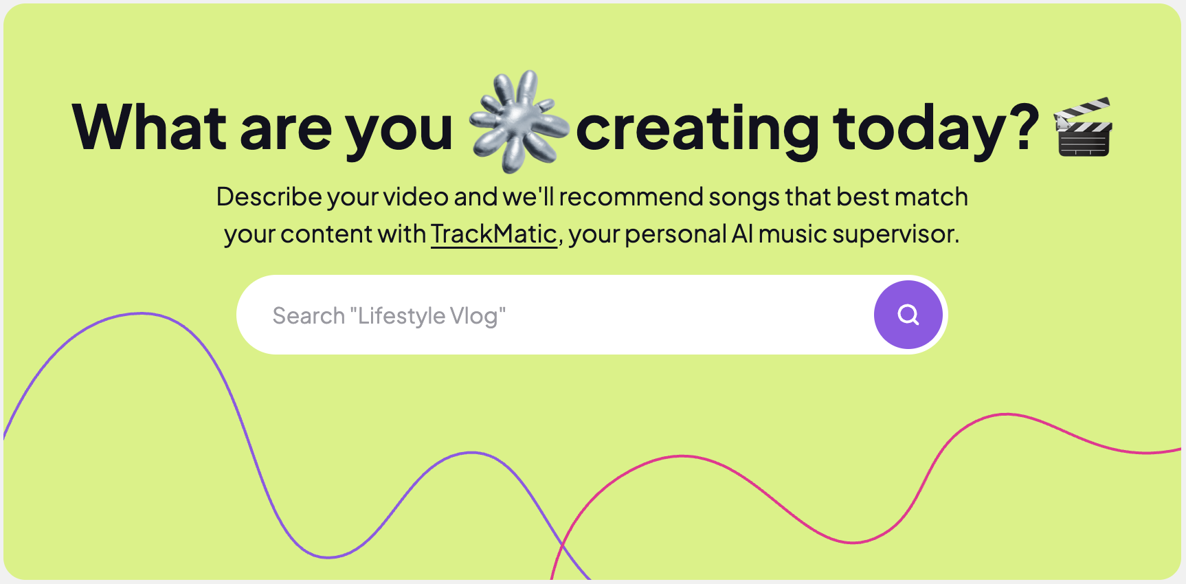 Describe your video and get music recommendations that match your content instantly. TrackMatic acts like your personal AI music supervisor, helping you find the right sound based on mood, pacing, and theme.