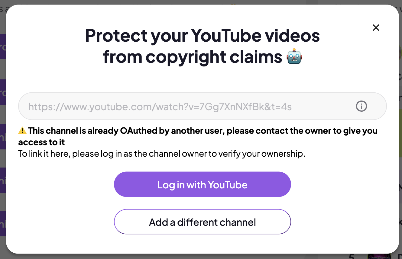 If you receive a message that your channel has already been added to another Thematic account, please:
